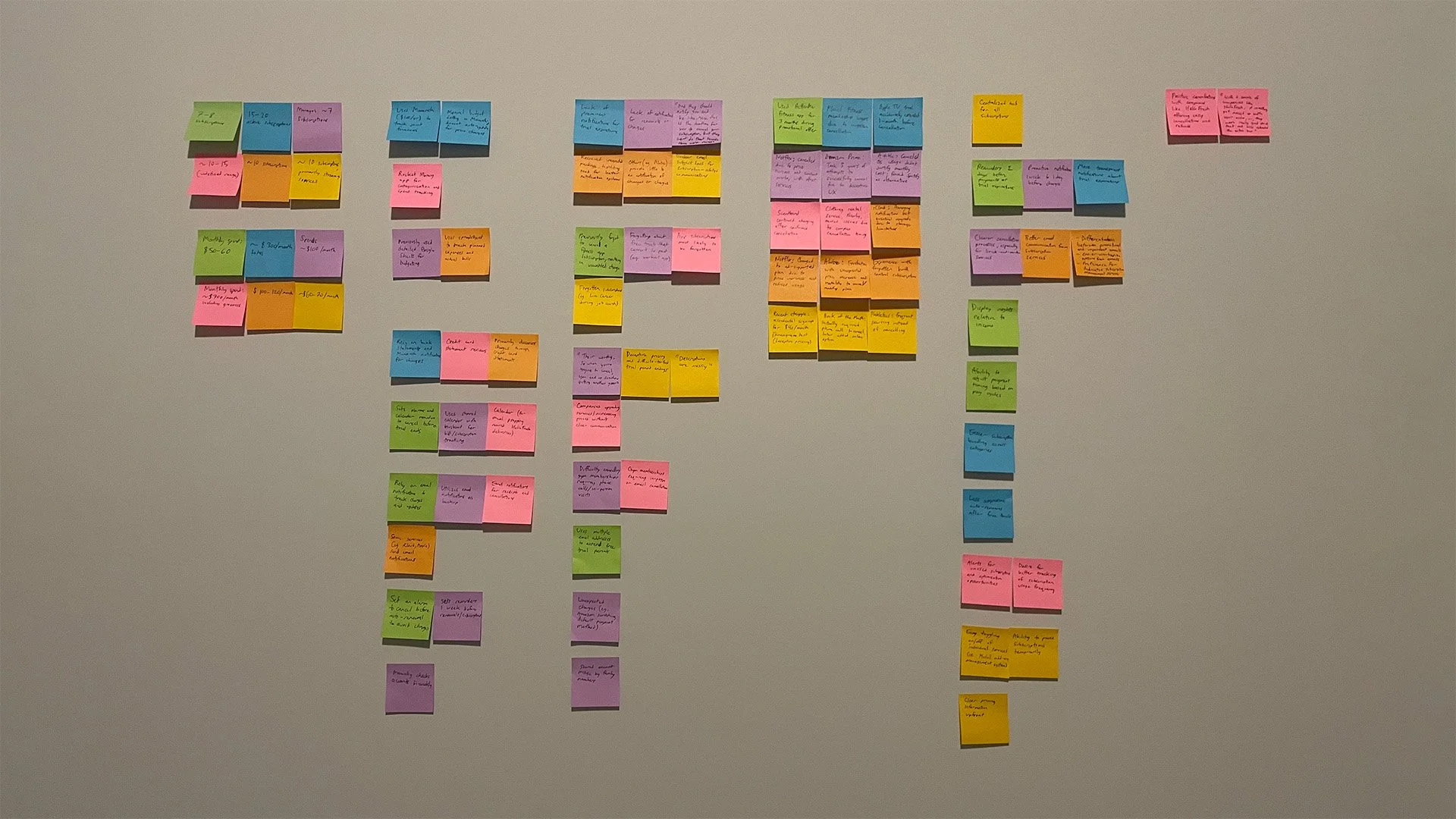 I organized my findings using an affinity diagram to find overarching themes under a thematic analysis: