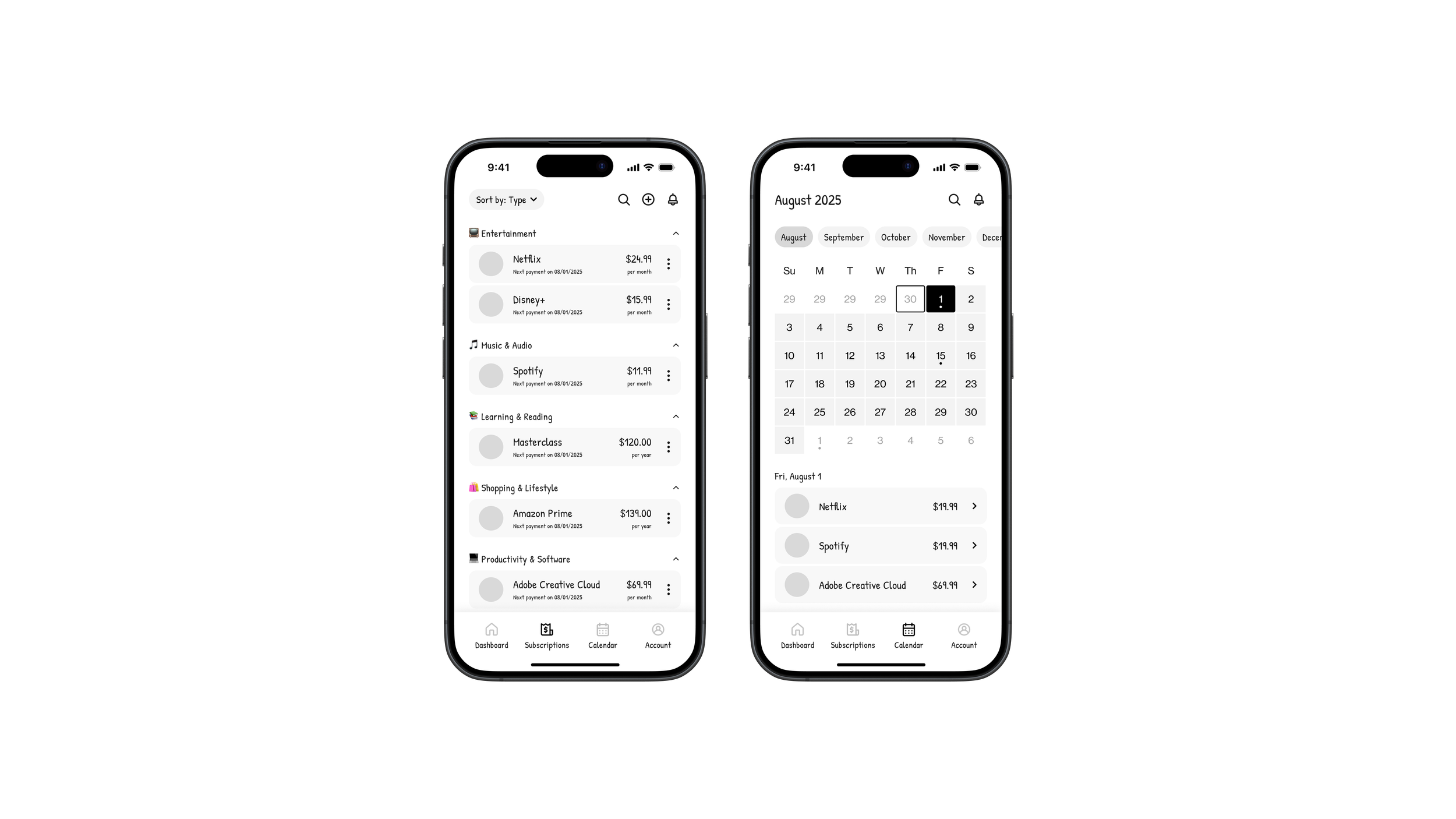 I can organize subscriptions based on my preferences (bundle, type, renewal date, etc.)